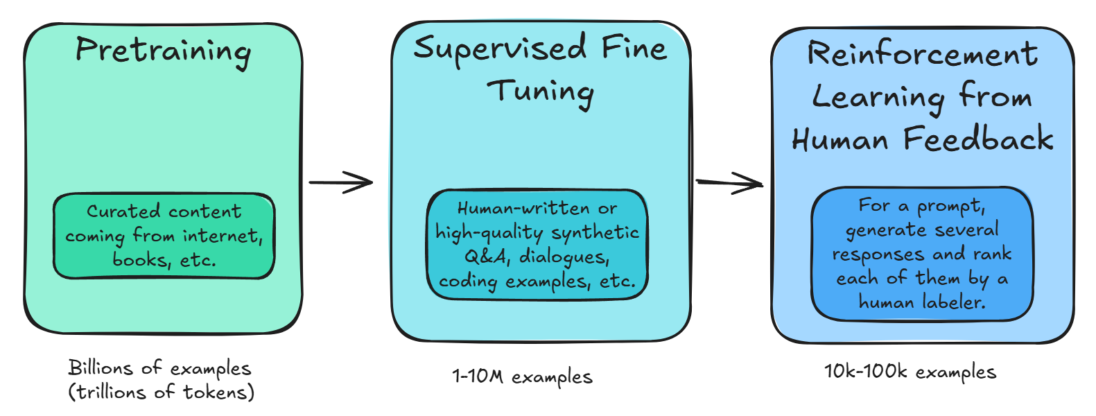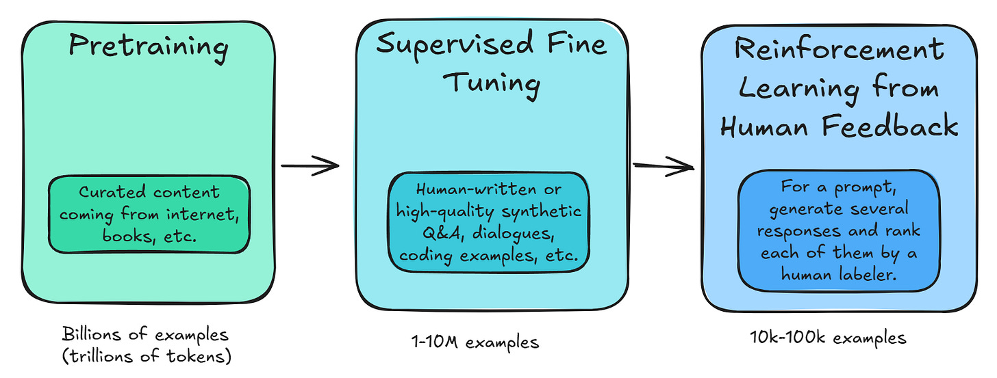 Before DeepSeek-R1 came out, the state of the art in training LLMs consisted of several phases. I will cover these very briefly (there are great sources describing this in more detail, not to mention the OpenAI paper on that).